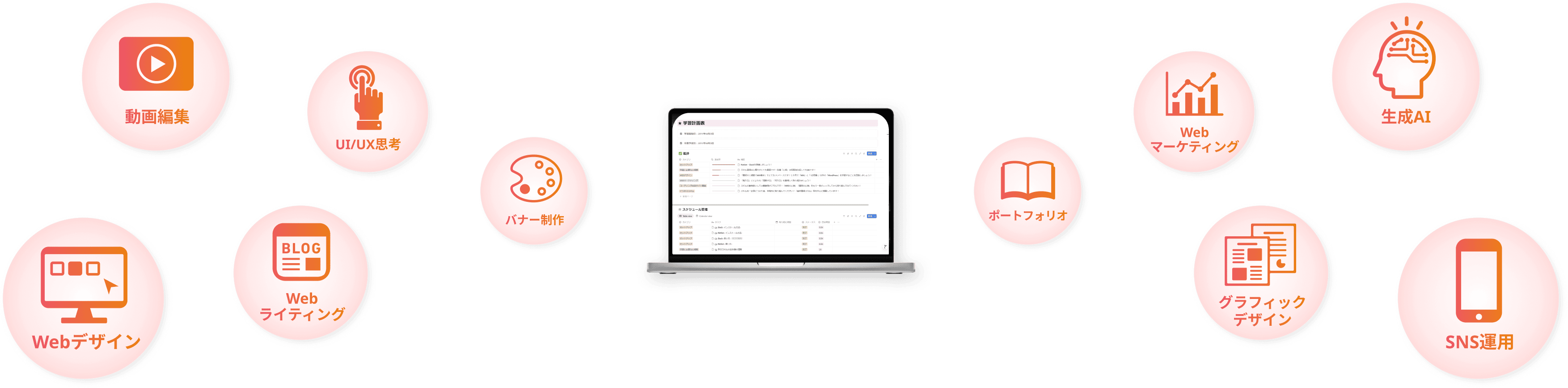 そのため、未経験から躓かずに学ぶための豊富でわかりやすい教材と、プロのマンツーマンを用意し、コーチが実際の仕事への挑戦までオールインワンサポートをいたします。